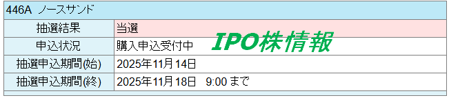 ノースサンド(446A) IPO詳細情報